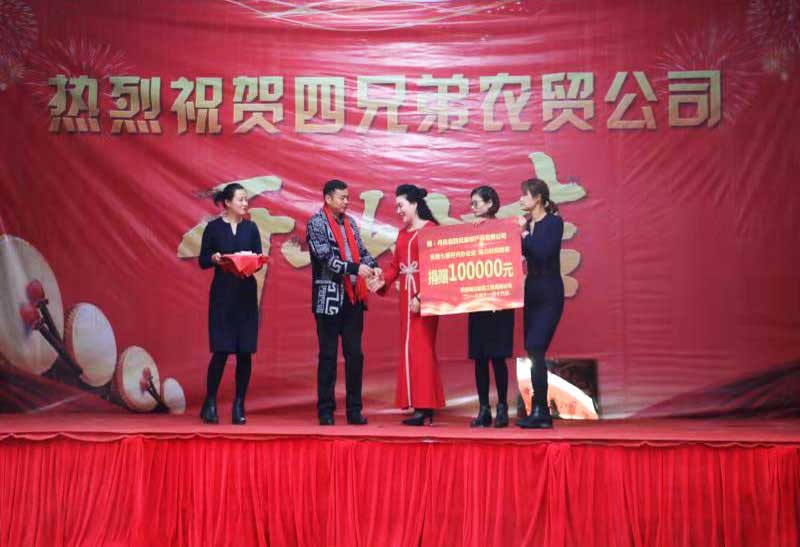 在熱烈的掌聲中,陜西秦川建筑工程有限公司總經(jīng)理劉愛云、四兄弟農(nóng)產(chǎn)品有限公司董事長劉三軍,進(jìn)行了捐贈(zèng)資金交接儀式,陜西秦川建筑工程有限公司向四兄弟農(nóng)產(chǎn)品有限公司捐款10萬元。